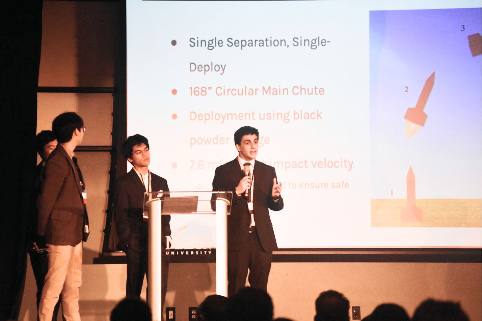 Rushil presenting Caelus Rocketry's mission at GMU Space Day